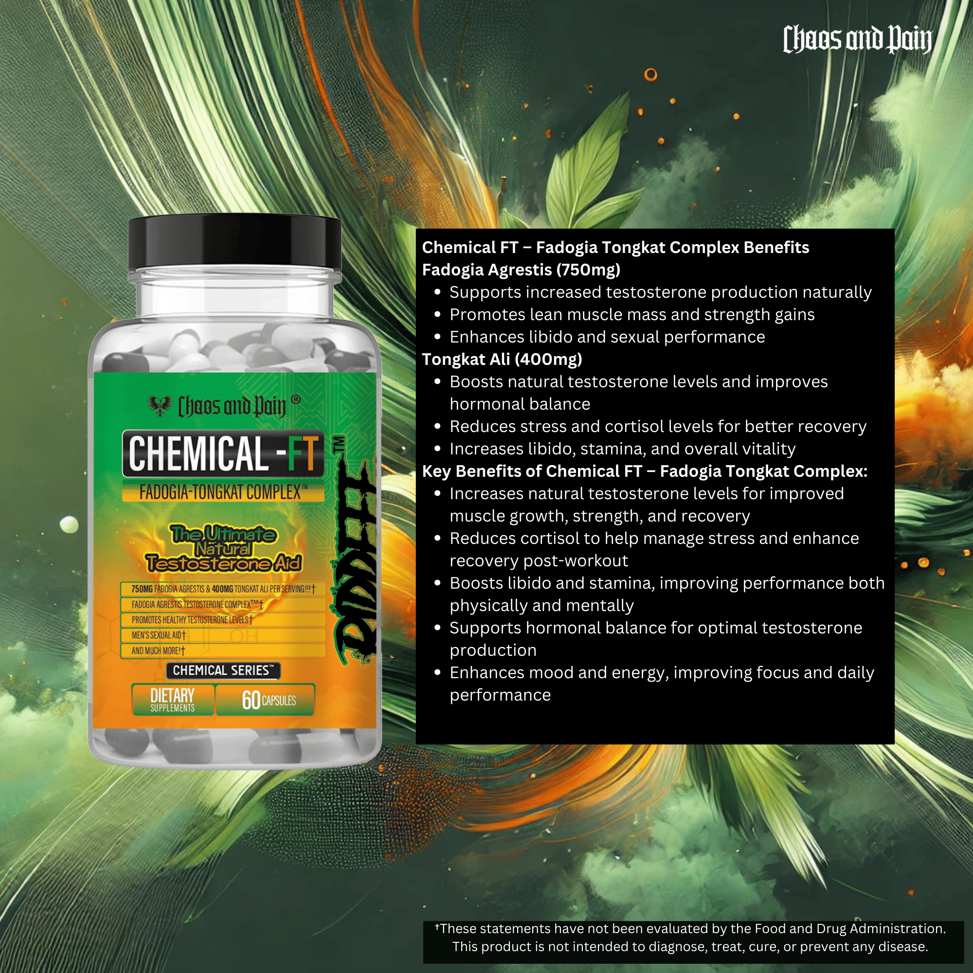 On top of CST-1, the bundle includes Chemical TE – Turkesterone Epicatechin and Chemical FT – Fadogia Tongkat Complex to supercharge muscle growth and strength. Turkesterone stimulates muscle protein synthesis without the unwanted side effects associated with synthetic steroids, while Epicatechin inhibits myostatin, allowing your muscles to grow beyond normal limits. Paired with the testosterone-boosting effects of Fadogia Agrestis and Tongkat Ali in Chemical FT, this stack enhances libido, promotes lean muscle mass, and supports overall hormonal balance. Together, these three products create the perfect natural anabolic environment for muscle growth, strength, recovery, and peak performance.+
