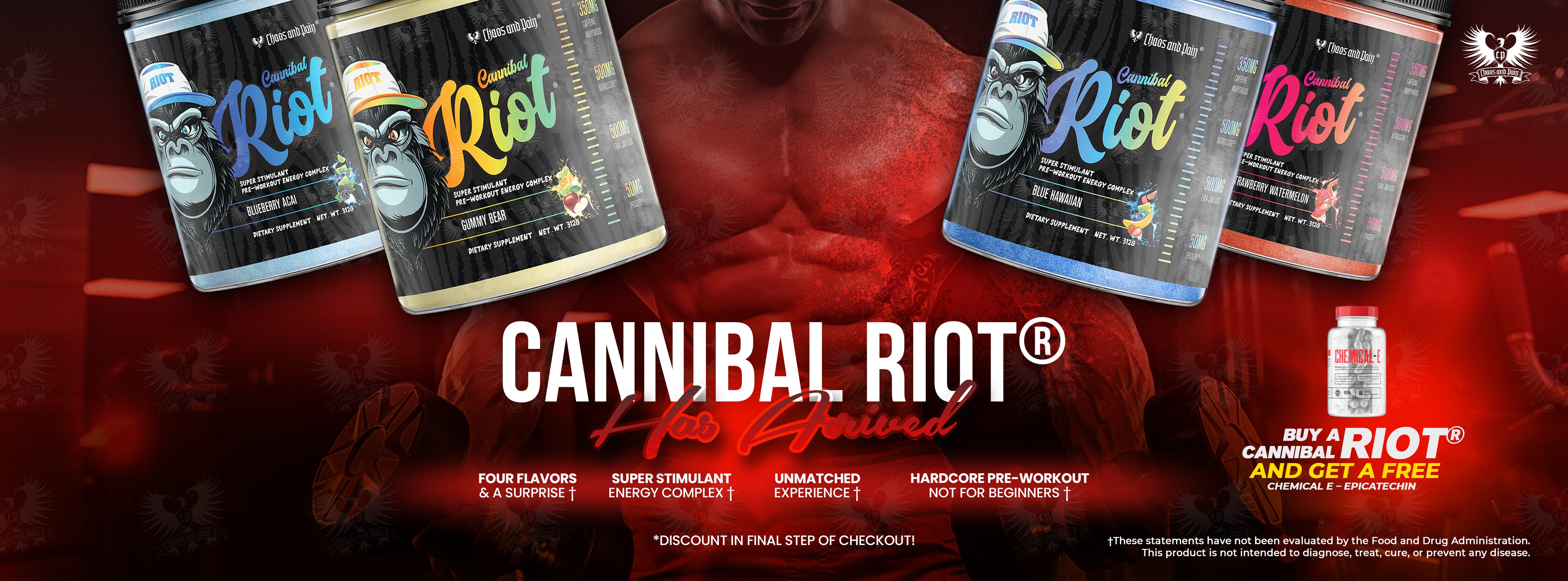 Cannibal Riot Pre-Workout is back after months of reformulating we finally found the right mixture for this Pre-Workout to reclaim its throne at the top of the hill.